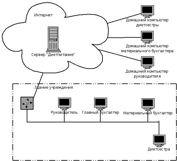 Интернет - вариант поставки. Система «Диетпитание» устанавливается на интернет-сервер разработчика программы,
