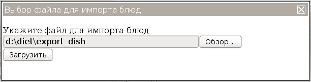 «Диетпитание» позволяет импортировать блюда из файла, полученного из